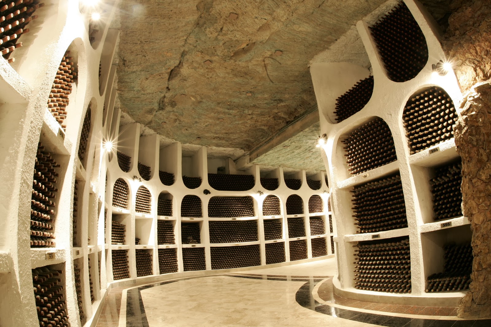 As adegas de Cricova somam cerca de 100 quilômetros de comprimento e em seus corredores de até 7,5 metros de largura e 3,5 metros de altura que albergam cerca de 1,3 milhões de garrafas com 653 marcas diferentes, podem circular automóveis (abaixo) por ruas que são batizadas com nomes de uvas, como Praça Cabernet, corredor Pinot Noir, ruas Chardonnay, Sauvignon, Feteasca, praça Aligote ou avenida Muscat. Veja bem abaixo parte da Cabernet Street.