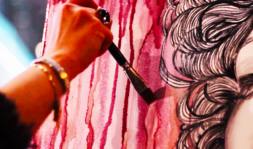 “Ultimamente tenho dedicado muito do meu trabalho para as empresas vinícolas, fazendo a criação de rótulos de vinho e capas de livros; fazendo performance de pinturas ao vivo em eventos e envolvendo o público que pode cheirar e perceber a obra e ver que é feito mesmo de vinho.” Nas fotos abaixo a artista com algumas de suas obras em rótulo e capa de livro.