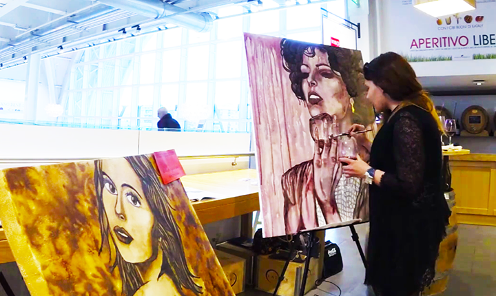 E Arianna Greco (acima) é uma artista com muito talento e que hoje está na lista das mais badaladas praticantes da l’Arte Enoica, a pintura feita com vinho, também chamada de “wine-artist”. Meu caro leitor ou leitora, Ariana me disse que se envolveu com o vinho por acaso (por amor – veja na entrevista abaixo) mas acho que foi o destino porque Bari fica na Puglia, e a Puglia, como sabemos, é a maior região produtora de vinhos da Itália.