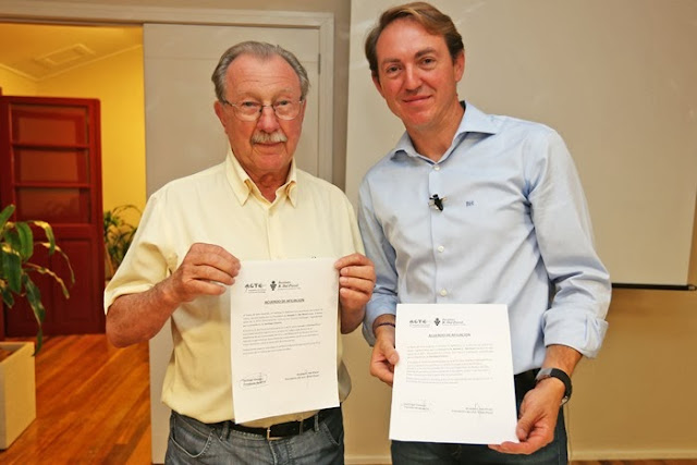 Santi Vivanco aproveita seus compromissos como empresário e dirigente de entidades ligadas ao vinho para obter o apoio de politicos, intelectuais, empresários, pesquisadores e organizações para a campanha e talvez já em 2014 formalizar o pedido à Unesco. Foi o que fez na Argentina e Chile em abril de 2013 e no Brasil durante sua participação na World Wine Experience em setembro. Na foto abaixo Vivanco (de camisa azul) está com o empresário Rinaldo del Pizzol, diretor do Eco Museu da Cultura do Vinho Dal Pizzol, um espaço instalado dentro do Parque Dal Pizzol, em Faria Lemos, Bento Gonçalves, que se associou á ACTE.