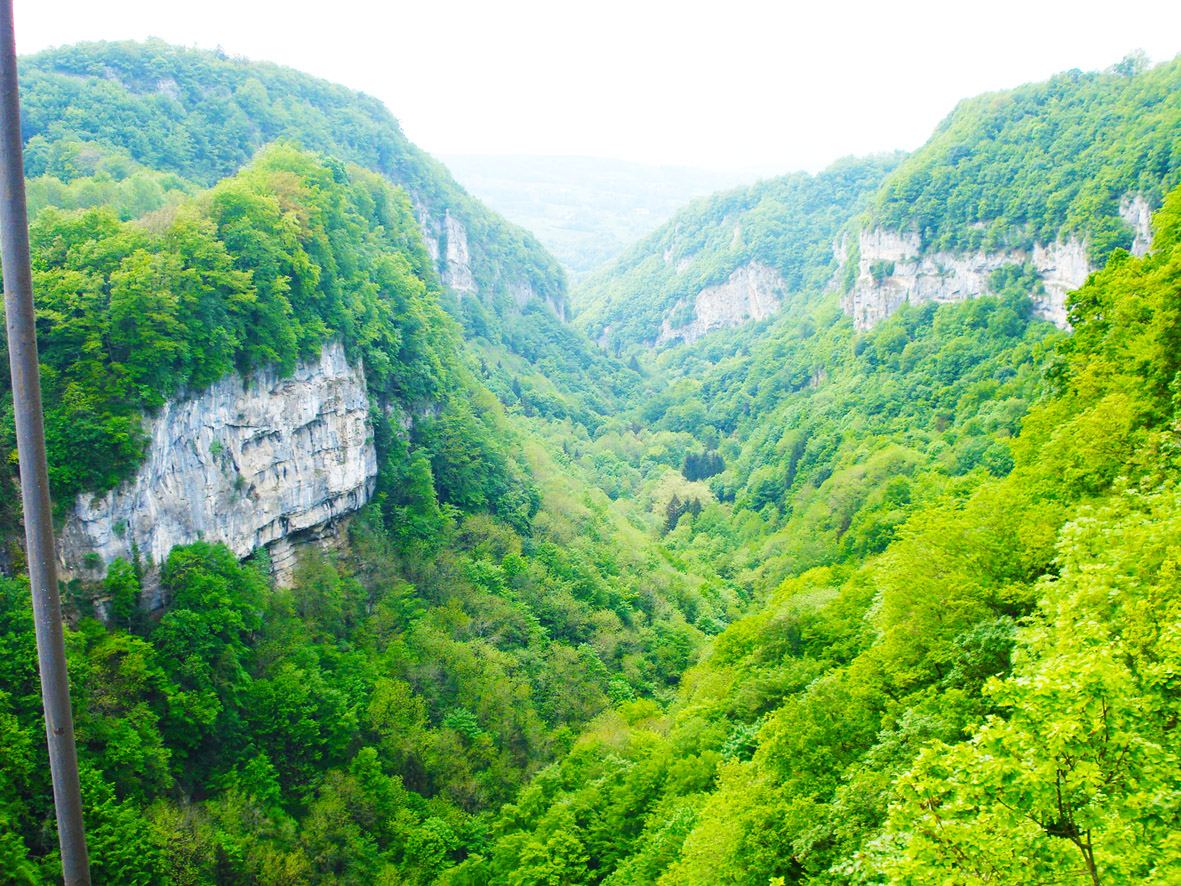 Mas vamos seguir viagem. Cerca de 40 Kms ao norte de Annecy, na rodovia RN 201, no sentido da Suíça (“subindo” no mapa) existem duas pontes sobre um canyon gigantesco que merecem sua visita: as Pontes de La Caille.