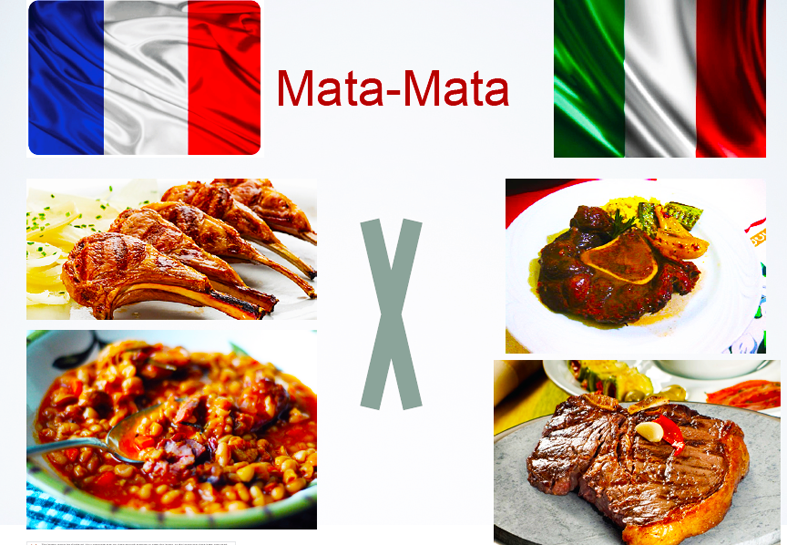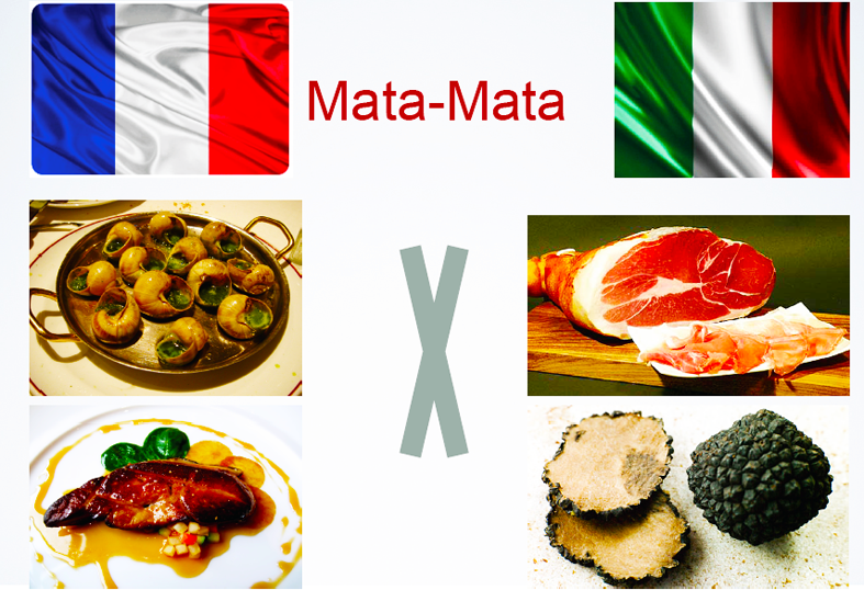 Na sequência enfrentamos uma fase “mata-mata”, na qual tivemos que comparar rótulos, massas, carnes, iguarias, queijos e doces dos países. Foi uma fase muito difícil porque você tem que escolher entre escargots franceses ou presunto de Parma; entre queijos roquefort ou camembert francês VERSUS um pecorino ou um gorgonzola italiano. Ou ainda, entre carnes – veja as fotos abaixo…