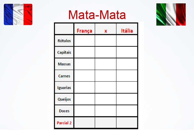 No fim somamos os pontos das diversas etapas para saber qual país levou a melhor na Batalha das delicias França X Itália. Mas não vou contar quem ganhou o confronto porque este é um segredo dos Confrades e Confreiras do João. Mas posso revelar que o João e a Taís estão planejando secretamente outras batalhas para breve – eu fico imaginando confrontos como Brasil X Argentina, Portugal X Alemanha, Chile X Espanha, Estados Unidos X Uruguai… Já pensou?