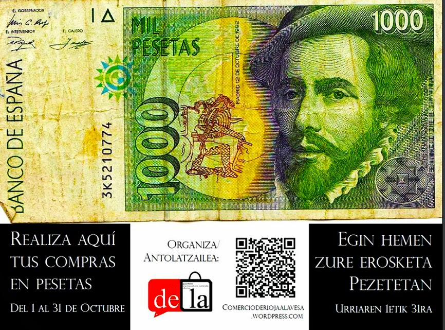Além dessa experiência exclusiva do enólogo ou vinicultor por um dia, a rota de vinhos de Rioja Alavesa oferece várias outras atrações, como uma visita teatralizada à vila medieval de Labraza (veja o cartaz abaixo); passeios em onibus especial; colheita noturna de uvas; degustação de uvas, mostos e vinhos; concursos de fotografia de natureza ou de vinhedos; passeios a pé, de bicicleta, a cavalo ou de segway entre vinhedos. E uma promoção saudosista: você pagar as despesas com a velha moeda pesetas (abaixo).