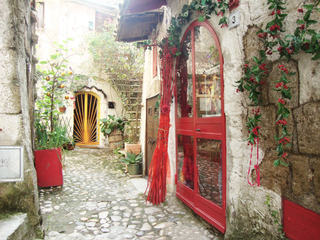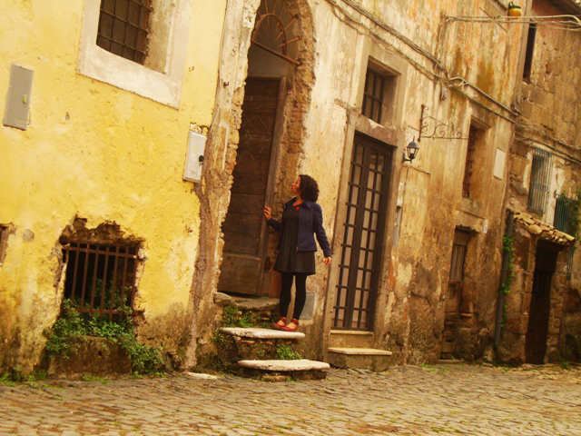 Não há carros em Calcata. Seus inúmeros gatos caminham tranquilamente, observando quem entra e quem fica. A cidade tem cores quentes e formas irregulares. Atrás das portas, curiosamente distintas entre si, o delicioso idioma italiano é música. E também se ouve música andando pelos becos, quando o artista toca seu piano.