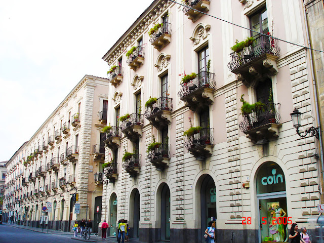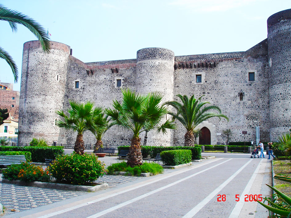 Chamada de “cidade das artes”, Catania tem muitos palácios e igrejas barrocas escurecidas pela fuligem do Etna. Entre a arquitetura de interesse estão a Basilichetta (Século V–VI); de San Salvatore (Século VIII–IX; a Badìa di Sant’Agata e a igreja de Sant’Agata alla Fornace – San Biagio (Santa Ágata é padroeira da cidade); a igreja de Santa Maria dell’Aiuto e dois prédios que visitei: o Duomo (do século XI, reconstruído no século XVIII – veja acima) e o Palazzo Ursino (hoje sede do Museu Comunale), construído por Federico II (1239-1250) mas logo depois modificado no século XVI (veja abaixo).