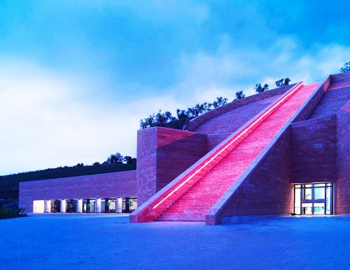 Lapostolle Clos Apalta, projetado pelos arquitetos da Amercanda, foi construido por uma estrutura demadeira, vidro e aço com seis andares e se parece com um um ninho de pássaro empoleirado na encosta da montanha. Além da elegancia e beleza externa, uma parte da obra foi construída debaixo da terra o que permite que a vinícola conserve a temperatura e umidade de maneira natural.