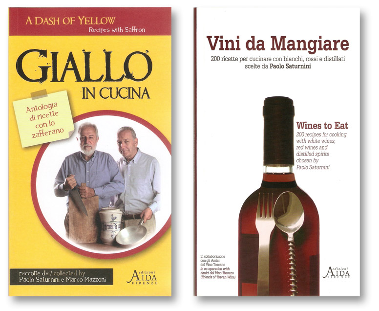 Paolo Saturnini (com casaco escuro na foto acima, comigo) foi presidente nacional da Associazzione Cittá Del Vino, que reúne as cidades italianas produtoras de vinhos e é um especialista sobre chiantis. É autor dos livros “Vini da mangiare”, com 200 receitas de uso do vinho na culinária, e “Giallo in cucina”, sobre o uso do açafrão, em parceria com Marco Mazzoni, produtor de açafrão.
