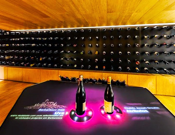 A loja de vinhos Weinhandlung Kreis de Stuttgart, Alemanha, está rodeada de vinhedos, razão pela qual, segundo disseram, os arquitetos da Furch Gestaltung optaram pelo contraste, criando um ambiente futurista com os vinhos em engradados de arame na forma de cubos com 25 garrafas cada (veja abaixo), tudo com linhas leves e as cores do arco-iris. Deste jeito conseguiram colocar 12.000 garrafas em apenas 70 m2.