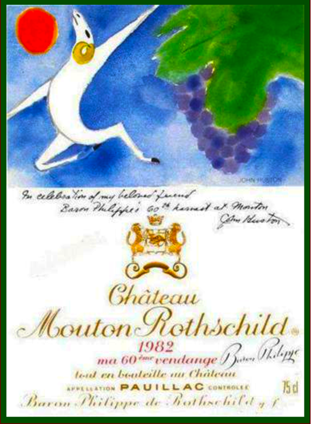 Como resultado foi muito bom, deste ano para a frente todos os anos o Barão convidava um artista para fazer um novo rótulo dos Château Mouton Rothschild, transformando as prateleiras em um museu de arte de altíssima qualidade, com rótulos desenvolvidos por artistas como Braque, Dali, Picasso, Kandinski, Chagall, Bacon, Tàpies, Miró, Andy Warhol e Koos. E a marca se transformou em um mito no mundo dos vinhos. Abaixo a obra de John Huston (1982), Keith Haring (1988) e do japonês Setsuko, em 1991.
