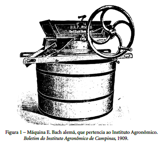 Pesquisa de Graciela de Souza Oliver (UFMG) publicado na Revista Brasileira de História no. 54 baseado em trabalhos do engenheiro Julio Inglez de Souza (livro “Origens do vinhedo paulista”, de 1959) e do médico e viticultor Luis Pereira Barreto (artigos técnicos publicados entre 1896 e 1900 na Revista Agrícola) – de onde retirei a ilustração acima de uma máquina de amassar uvas – identifica produção vinícola em cerca de 30 municípios paulistanos entre 1880 e 1900, especialmente ao longo das ferrovias Mogiana, Paulista e Sorocabana. Entre eles estão São Roque (que cresceu bastante em qualidade e importância) e São Bernardo do Campo, mas não se sabe se por causa da Chácara Cayres; por isso por enquanto podemos considerá-la como um “elo perdido”.