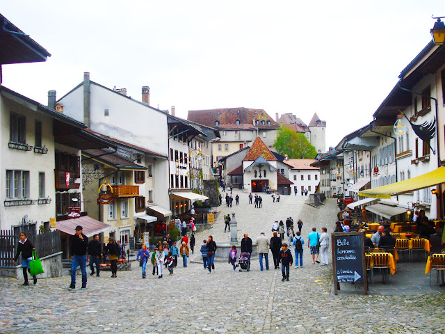Visitamos uma fábrica, minha filha Renata e eu, e degustamos todos os tipos, com todos os acompanhamentos possíveis – incluindo pequenas provas com vinhos tintos e brancos de quase todas as denominações suíças: Chardonne, Saint-Saphorin, Calamin Grand Cru, Epesses, Dézaley Grand Cru, Vevey-Montreaux, Villette e Lutry. Mas isto foi depois de visitar o vilarejo que fica no alto de uma colina encimada por um castelo – o Castelo de Gruyères, claro.