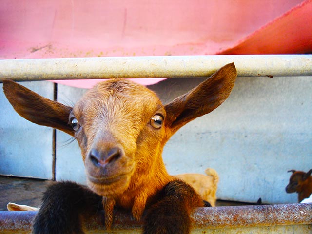 Lembrei do poeta romântico Gonçalves Dias porque se “nossa terra tem palmeiras” como ele escreveu, o Alentejo tem campos, muitos campos e que produzem o que precisamos para uma vida de enófilo: campos com vinhedos (a árvore que produz vinhos), com sobreiros (a árvore que produz rolhas de cortiça), com olivais (a árvore que produz o azeite de oliva), campos com cabras, vacas e ovelhas que produzem carne, leite e queijos e os famosos porcos alentejanos, especializados em nos proporcionar deliciosos enchidos e presuntos. Fiz uma degustação de azeites em uma típica casa alentejana na Mercearia Ilegal (foto abaixo) e também visitei uma fazenda de cabras onde fotografei o jovem da foto abaixo.