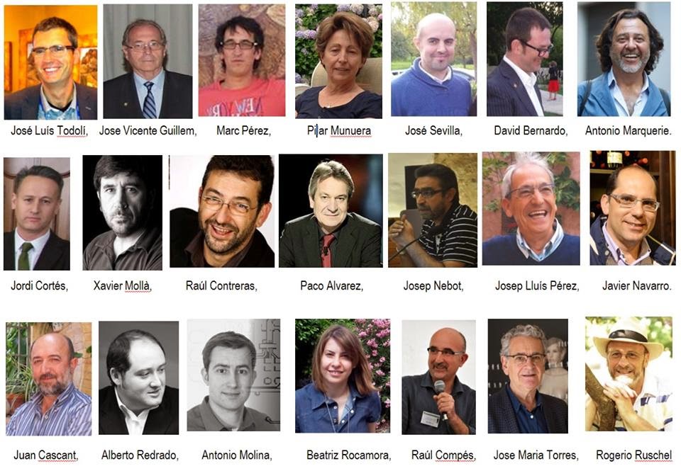 Gostaria de ter compartilhado também a opinião da Lis Cereja, da Enoteca Saint Vin Saint (que não chegou a tempo); da francesa Caroline Putnoki, da Cap’Amazon e dos brasileiros Peter Wolfenbutter, Didu Russo, entre outros que são minhas referências neste ramo vinícola. Gostaria de ter tido a contribuição de algum especialista em minifundios para esclarecer dúvidas sobre uma lei que tramita no Congresso Nacional sobre a produção de vinho “colonial” e “familiar” em minifúndios no Brasil, que me parece contrariar o potencial da atividade. O curso reuniu 22 professores altamente especializados (veja foto abaixo) de cinco universidades espanholas (Madrid, Valencia e Alicante, entre elas) e 50 alunos. O curso vai até dia 17/11/2014, parte em salas de aula e parte em vinhedos.