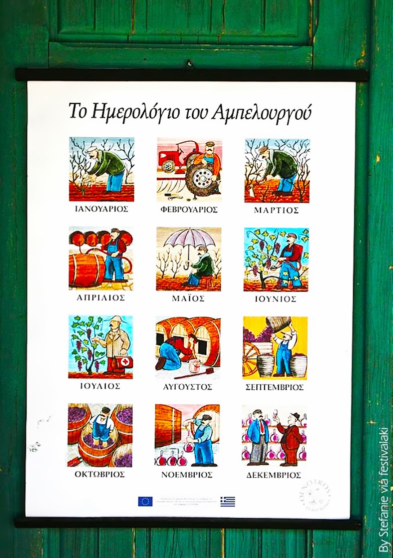 Uma das mais importantes tarefas de marketing é não deixar o produto envelhecer para não perder mercado. Vinhos não escapam desta lógica do mercado consumidor consumista: precisam se renovar constantemente. Só que o vinho tem um problema: o produto tem custo de produção mais elevado do que outras bebidas como cachaça e cerveja. Isso porque em sua cadeia de produção estão custos e condições de produção complexos como cultivo e crescimento incontroláveis (afinal a uva depende do clima) e processos agrícolas e industriais sempre complexos, como mostra o divertido poster grego abaixo que você entende mesmo sem saber grego…