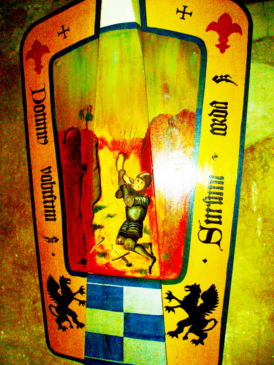 Atualmente a Viela Dourada é um conjunto de pequenas lojas de lembranças para turistas e na parte superior das casinhas foi montado um pequeno museu de armaduras, roupas, brazões e outros equipamentos da idade média da região, a Boêmia central. Como é um lugar escuro propositalmente, as fotos não ficaram lá grande coisa, mas servem como registro. Eu mesmo, como vistante (abaixo), tinha que olhar bem de perto para poder ver detalhes.