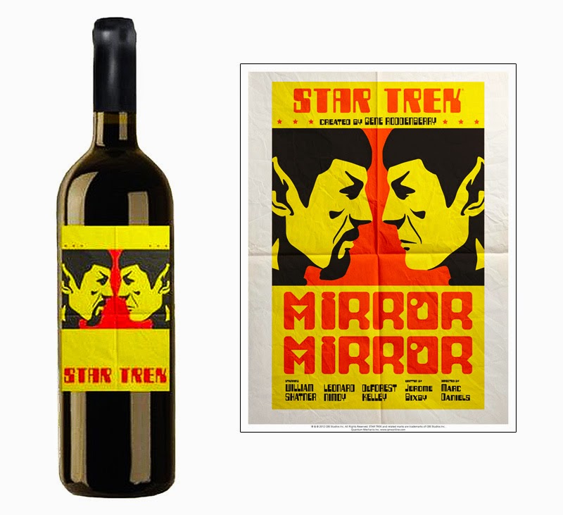 Em 2013, para comemorar os 50 anos da estreia da série, a vinícola Viansa Winery, de Sonoma, Califórnia, Estados Unidos, lançou uma coleção de três vinhos para fãs de “Jornada nas Estrelas” (nome da série “Star Trek” no Brasil; em Portugal se chamou “Caminho das Estrelas”) e seus fantásticos personagens liderados pelo Capitão James T. Kirk, pelo Oficial Médico Chefe Leonard McCoy e pelo Primeiro Oficial Comandante Spock (um volcano!) que mostramos abaixo inclusive no formato menos nobre de rolhaOs três vinhos da coleção foram criados para homenagear três séries de muito sucesso: “The city of the Edge of Forever”, “Mirror Mirror” e “The Trouble with Tribbles”. Os rótulos foram desenhados por Juan Ortiz,um artista e designer gráfico muito conhecido – veja abaixo.